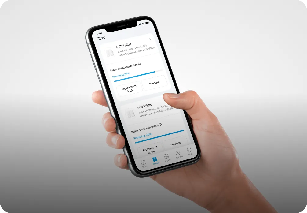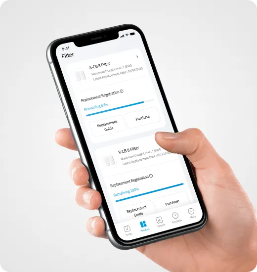 Our app tracks real-time filter usage and automatically delivers new filters free of charge throughout the contract period.